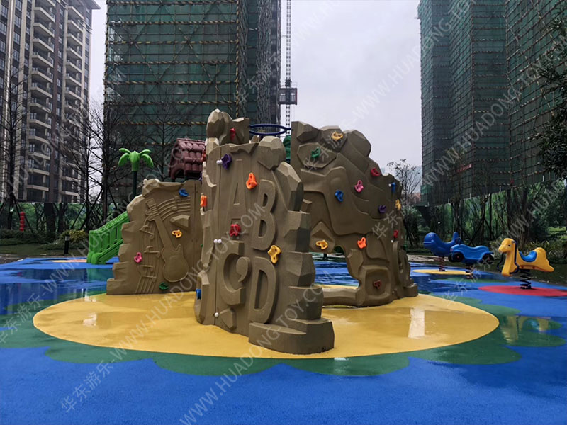 施工设施:健身器、户外滑梯、攀爬假山