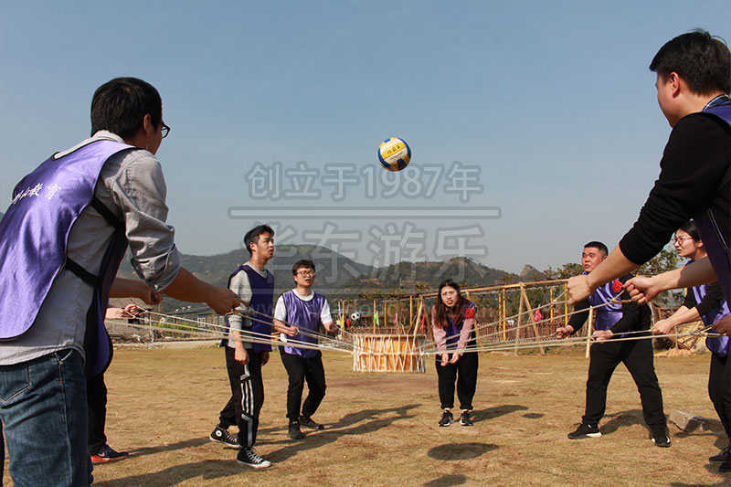 击鼓颠球又叫动感颠球、鼓动心声、鼓动人心,这是一个要求团队高度协作的项目,需要大家在短时间内制定出达到目标的方案,并在执行过程中协调一致。实际操作时,难免会遭遇排球落地、落绳子上,学员身上等失败的情况。这就要求队员们在认真负责的同时能够沉下心来,承受得住失败的挫折,越挫越勇,持之以恒,最终成功地完成任务。