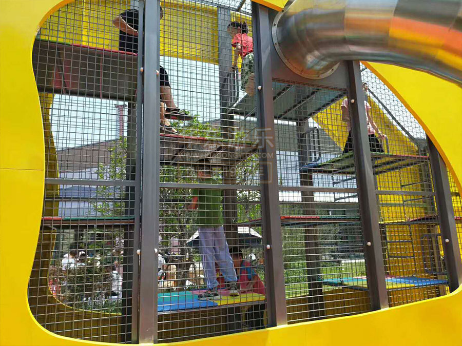 碧桂园城市之光案例是由必一运动游乐自助设计的研发的以水中的鱼儿为主题而设计的游乐设备,该游乐设备具有爬网、不锈钢滑梯、攀岩设备等,设计新颖,主题明确,深受小朋友的喜爱。