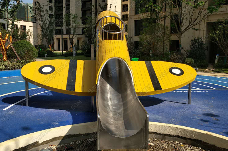 • 该项目采用的是以复古式的战斗机为设计主题,整个设计了爬梯、不锈钢滑梯、沙池、摇摇马等游乐设备,给小朋友带来了很好的游乐环境。