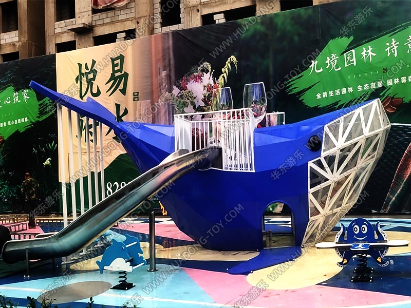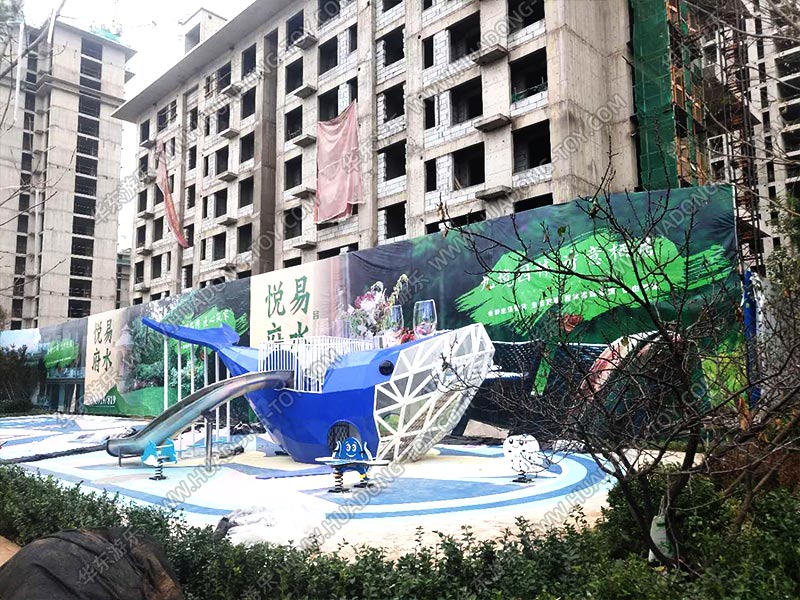 易水悦府房地产项目是一个综合性的休闲、娱乐、生活为一体的生活服务器区,在这里主要为小区业主提供一个可以互动、交流、玩耍的场所,该项目采用了必一运动游乐自主设计的大鲸鱼滑梯为主,附加摇摇马等游乐设施,整个项目设计完美,实用性强,深受业主们的喜爱。