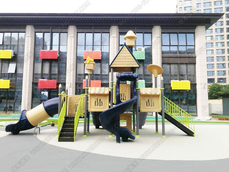 卓越阳光幼儿园项目案例采用的是必一运动游乐自主研发的别墅屋系列滑梯,添加了摇摇乐、万能秋千组合、打击音乐板等游乐设备,丰富了整个校园的游乐设施,也为小朋友的玩耍、教学提供了丰富的游乐和教学的环境。