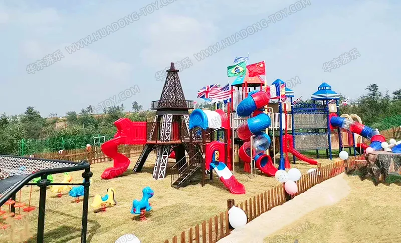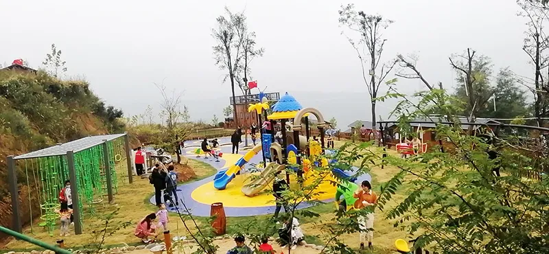 甘山晟境儿童休闲区选用了必一运动游乐生产的跨国欢乐岛滑梯、动物系列滑梯、攀爬墙‘爬网、摇摇乐、旋转转椅、音乐版等游乐设备,给小朋友提供了休闲、玩耍的场所。