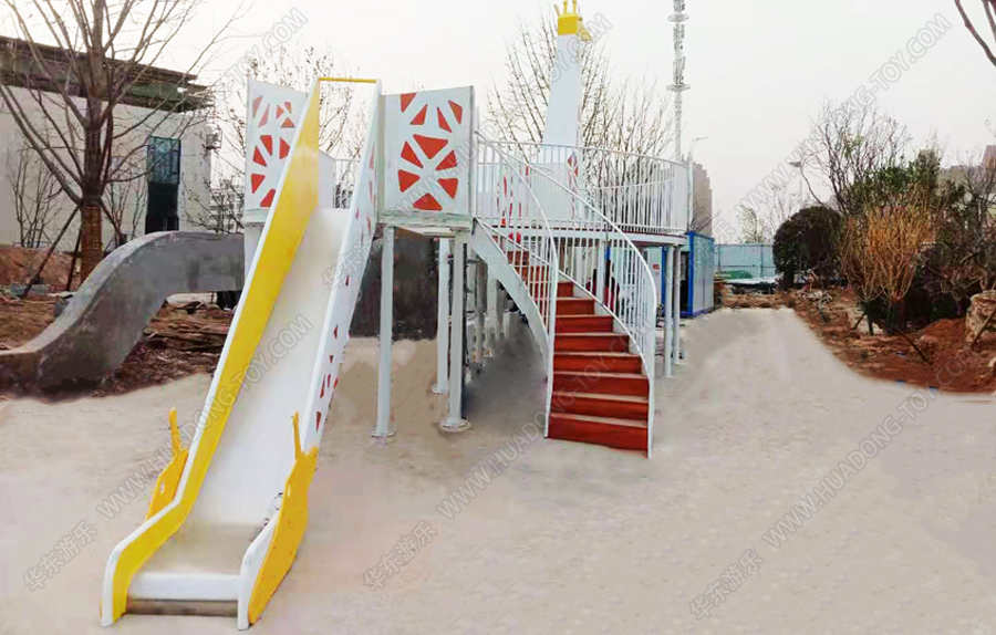 • 河南商丘市项目是一款长颈鹿风格的游乐设备,该游乐设备具有不锈钢滑梯、旋转爬梯等功能,生动的形态给小朋友一种欢乐和喜悦感,让小朋友能够与之愉快的玩耍。