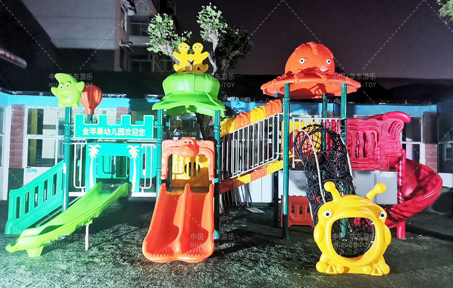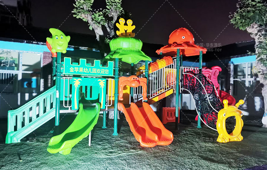 山东省济南市历城区金苹果幼儿园是一家由教育局批准的幼儿园,主要提供学前教育的服务和托管,此次学校选用的是由必一运动游乐自主生产和研发的动物系列组合滑梯,该滑梯设置了网洞攀爬、S形滑梯、直行滑梯、爬梯等功能,独特的动物系列设计风格深受广大小朋友们的喜爱。