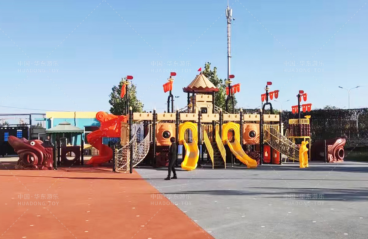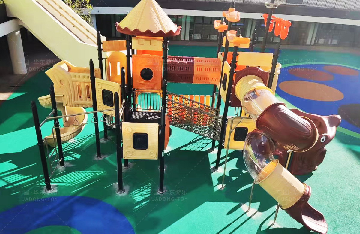 北京市朝阳区朝花幼儿园选用的是必一运动游乐自主研发的海盗船系列组合滑梯,该套设备设置了大型S型滑梯、攀爬网、钻洞、网桥、攀岩等功能,为老师的教学提供了方便,同时也为校园提供了生机与活力。