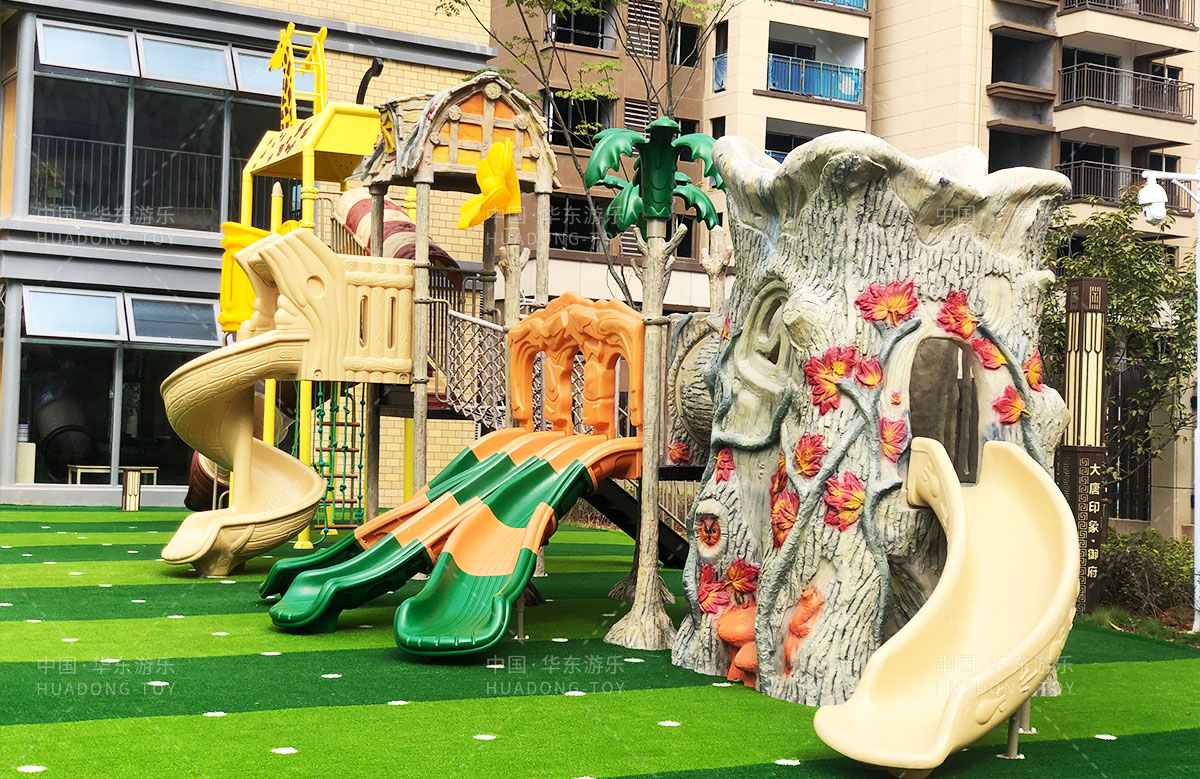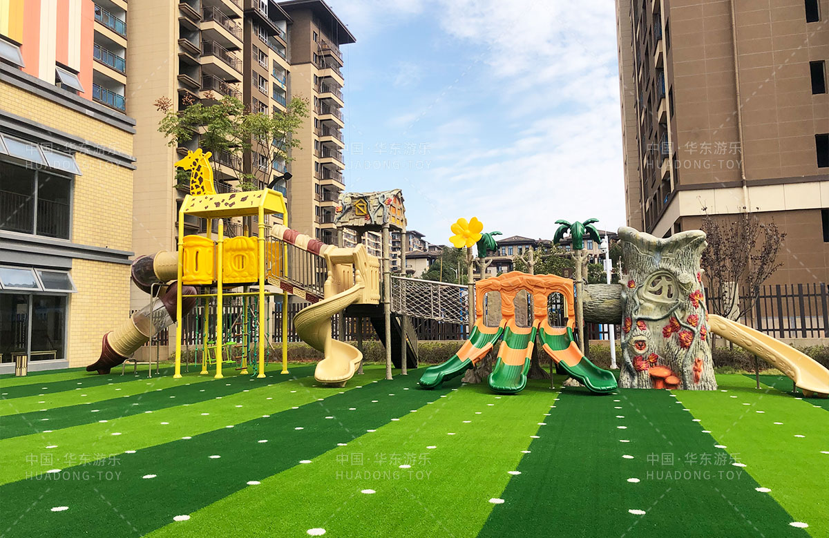 长沙市天心区教育局大唐印象幼儿园选用的是必一运动游乐自主研发的动物系列滑梯、该滑梯具有攀爬、滑梯、钻洞、爬网、枞林攀爬等功能,能够锻炼小朋友的四肢臂力,很好的让小朋友在玩耍中健康快乐的成长。