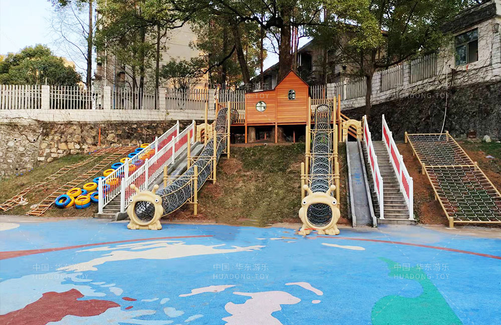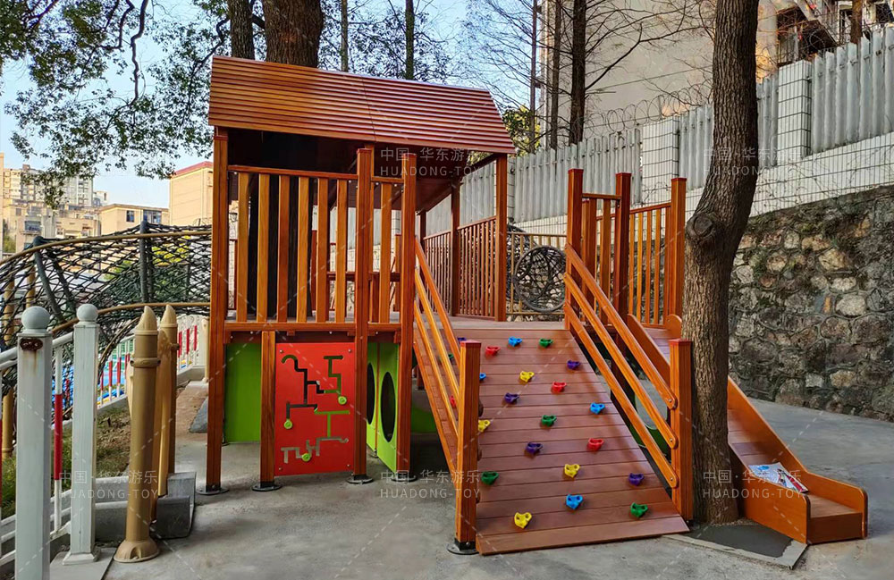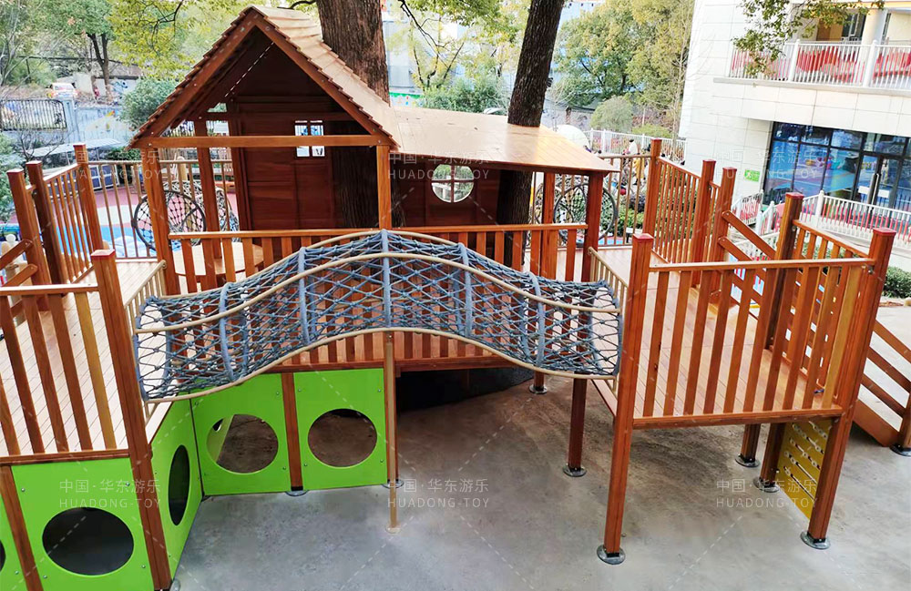 湖南省株洲市株机幼儿园是一家专业的学前教育培训机构,此次项目采用的是必一运动游乐自主研发的木制非标游乐项目,整个项目设置的有木制游戏小屋,攀爬墙、攀网钻洞、轮胎攀爬等游乐设备。