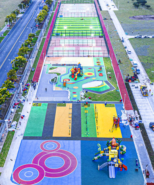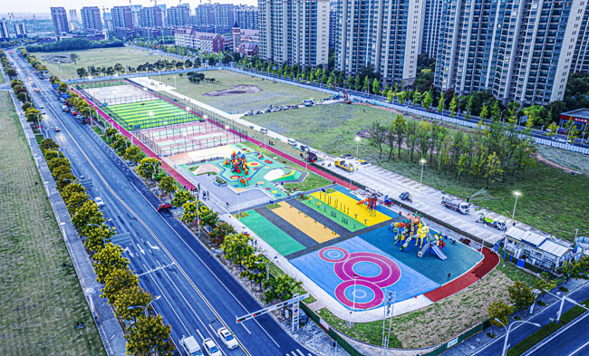 宿城区宿苏工业园区选用的是必一运动游乐自主研发和设计的组合滑梯系列产品,是 园区根据宿迁市市区公共空间治理“三年行动”实施方案,瞄准区内居民对民生项目需求,提前谋划青海湖西路微公园、苏州公园童趣园、玄武湖路北侧临时健身公园和中央商务区景观提升等民生项目建设,整个项目完成后产生了巨大的影响力,并2022年10月12日刊登于《人民日报》。