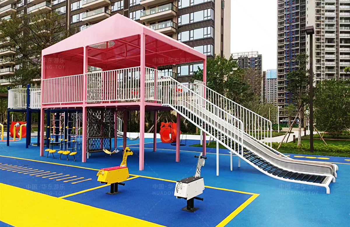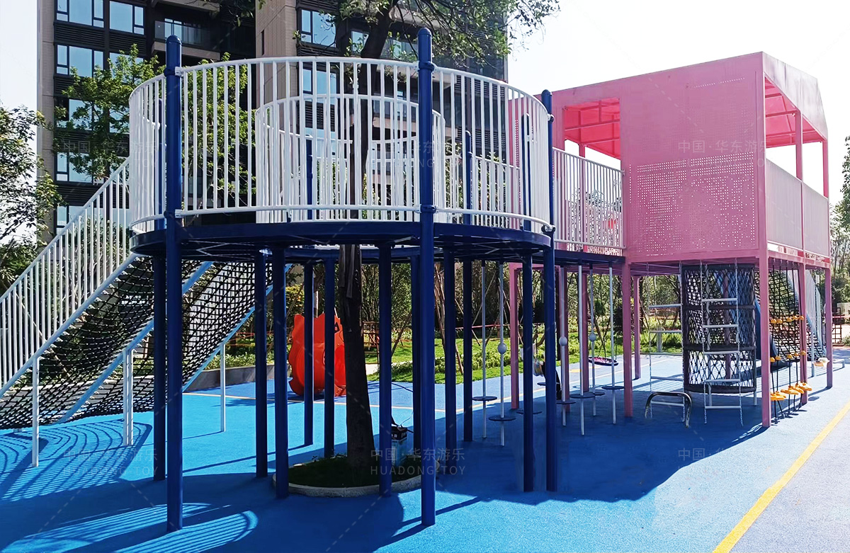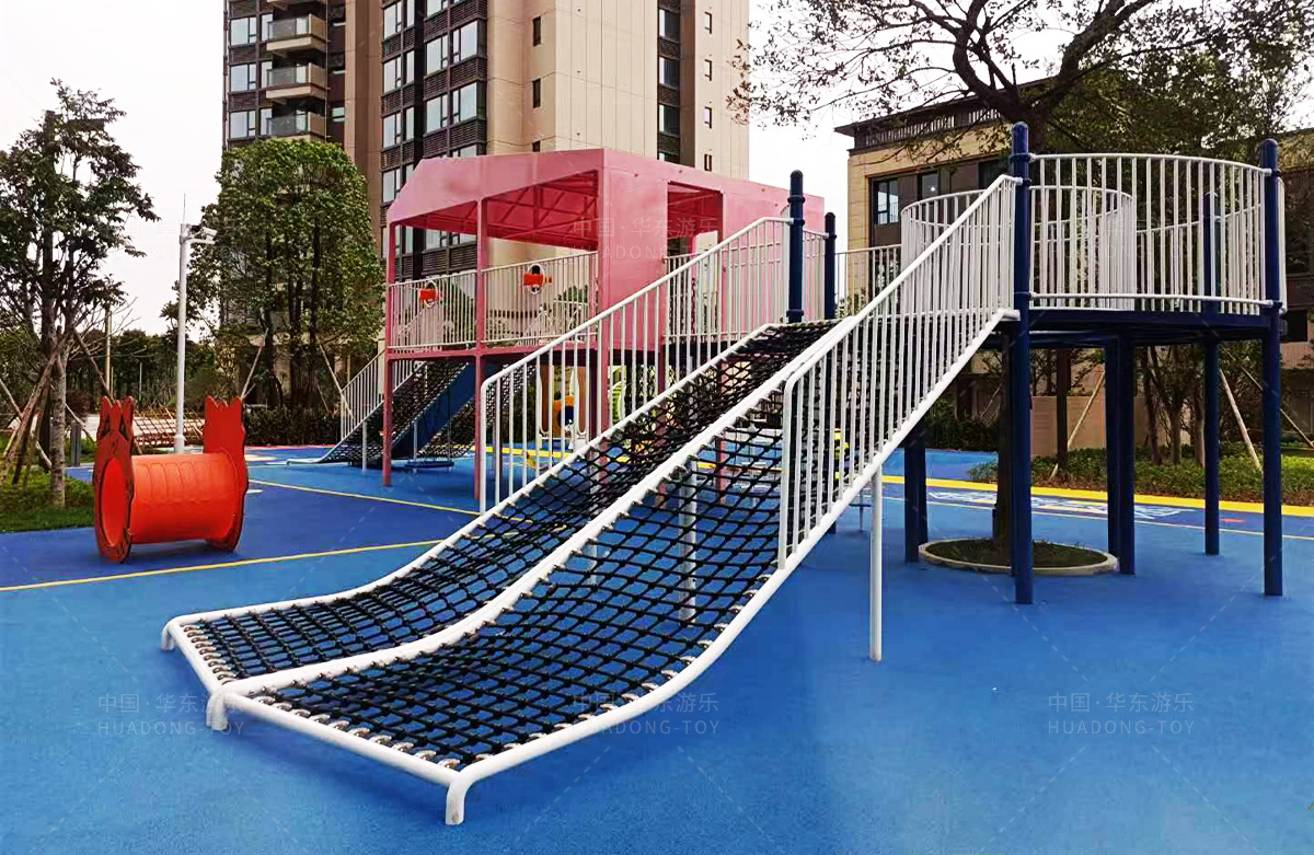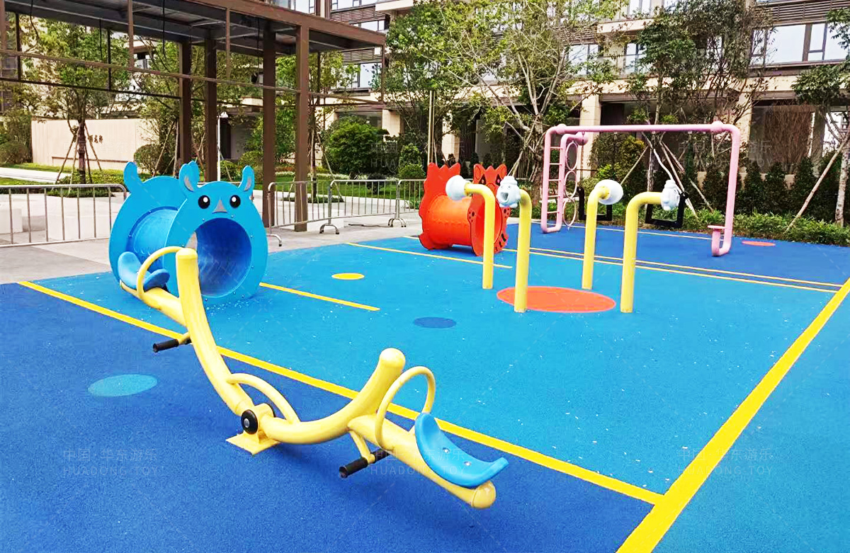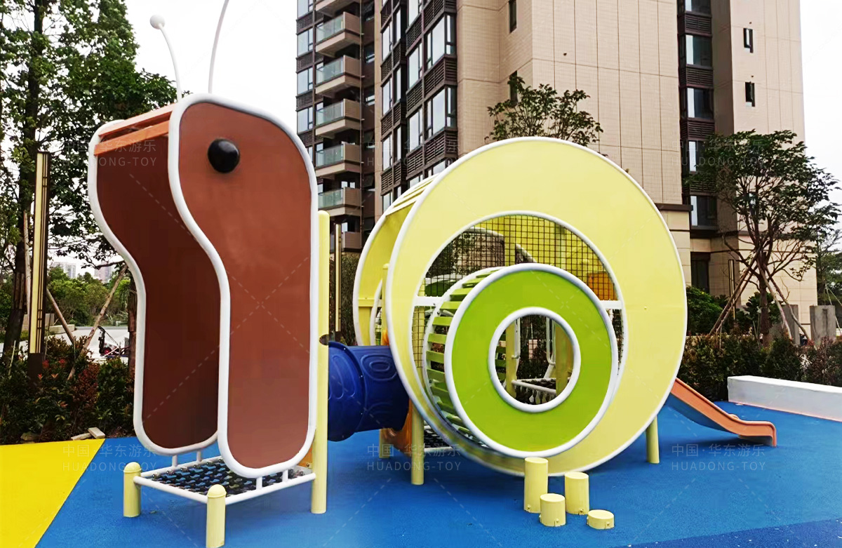 该房地产选用的是必一运动游乐设计和生产的非标定制系列的游乐设备,分别设置了跷跷板、摇摇乐、钻洞、传声筒、蜗牛主题组合滑梯,以及具有钻洞、攀爬网、攀爬绳、攀爬梯等功能为一体的空中小屋的游乐设备,该游乐园的建设不仅仅丰富了小区人们的休闲生活,还为小朋友提供了一个休闲、娱乐的场所。