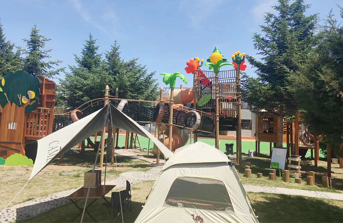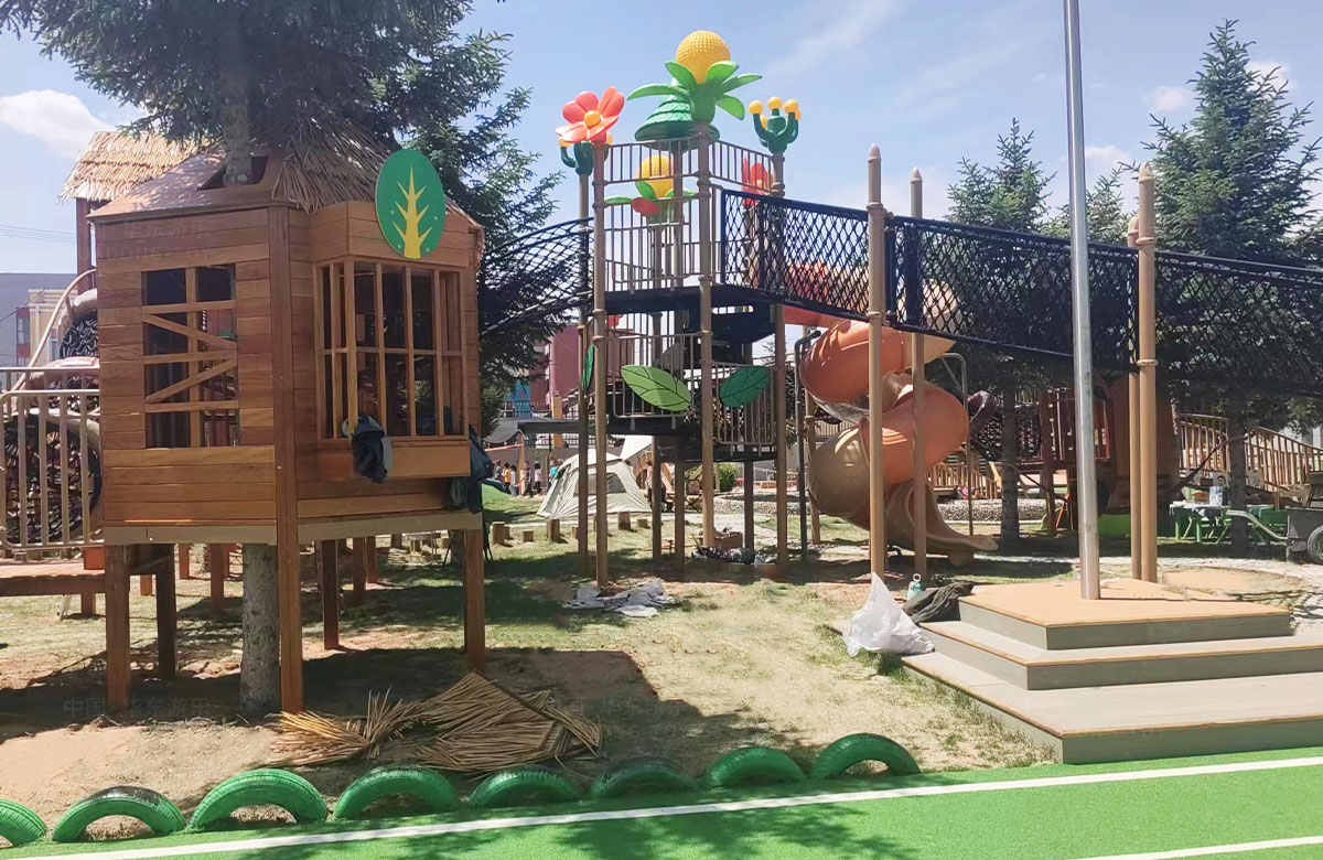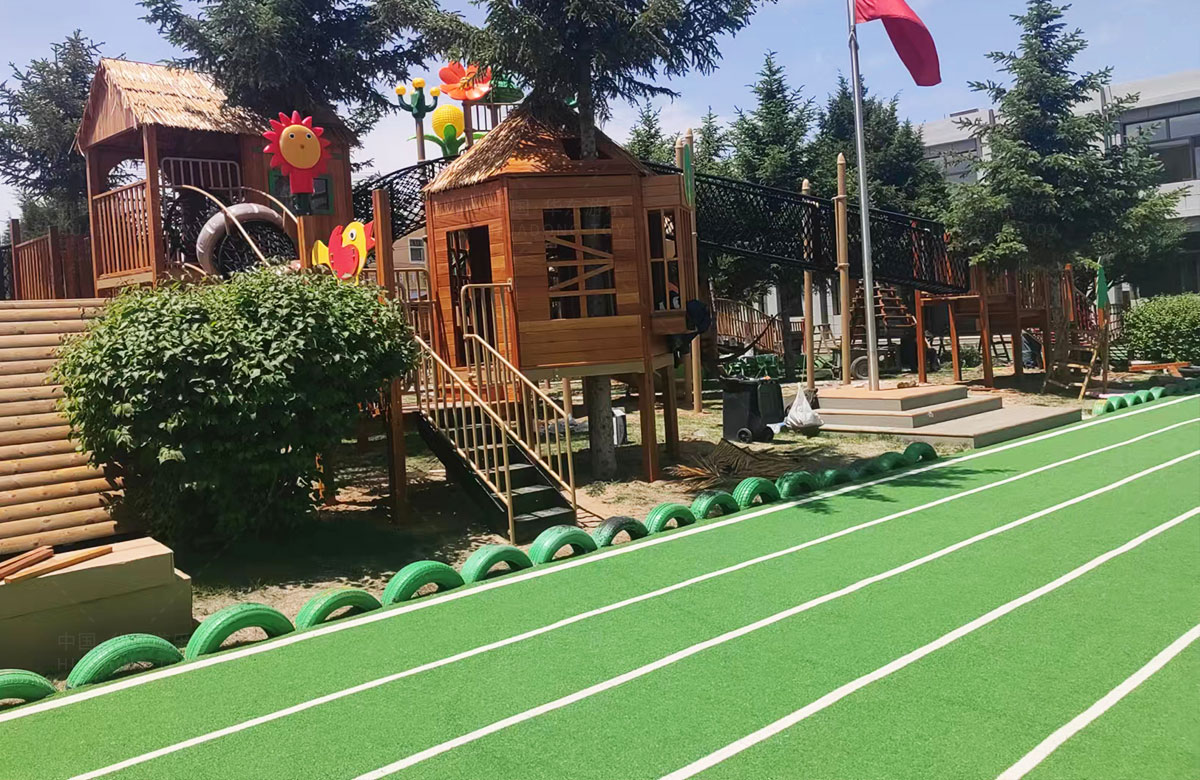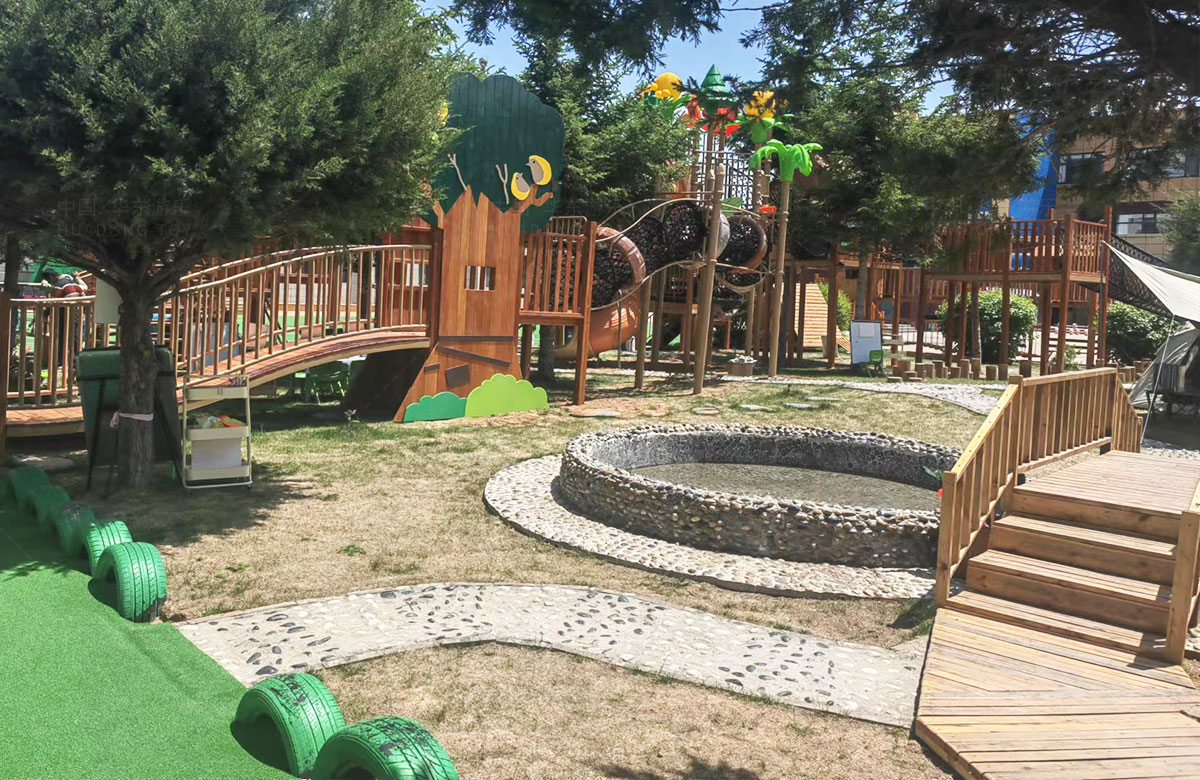 该幼儿园是一个专业性的学前教育培训机构,选用的是必一运动游乐自主研发和设计的具有空中攀爬网、钻洞、空中栈道、游戏小屋、直行滑梯为一体的综合性 游乐设备,这些设备的选择不仅仅丰富了孩子们校园的生活,还很好的锻炼了小朋友的攀爬能力、四肢的协调能力、攀爬过程中的平衡能力,同时也促进了孩子们大小脑的发育。