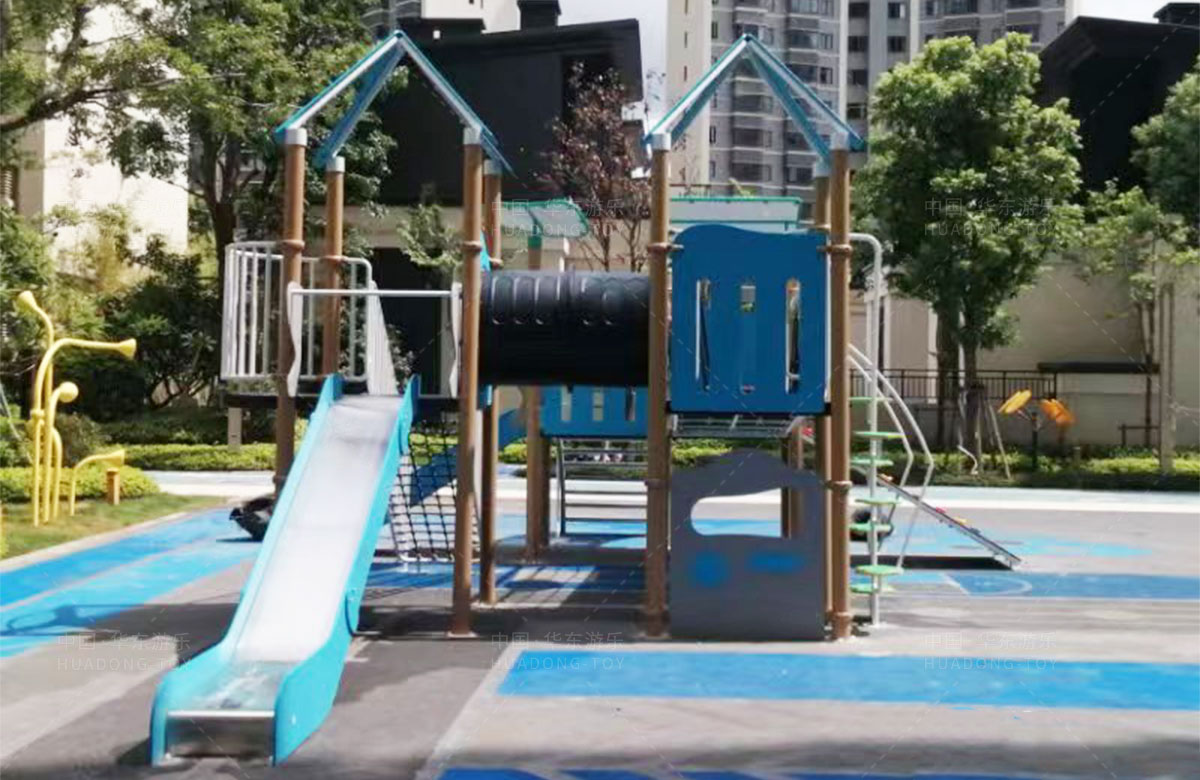 该项目选用的是必一运动游乐自主研发和设计的PE板系列组合滑梯,该滑梯是一款具备了攀爬墙、攀爬网、攀爬梯、空中网桥、不锈钢滑梯等功能为一体的综合性游乐设备,除此之外还设置了小朋友喜欢的传声筒、攀爬墙、翻翻乐和成年健身器等设备,不仅丰富人们的休闲生活,也为该小区增加了更多的生机与活力。