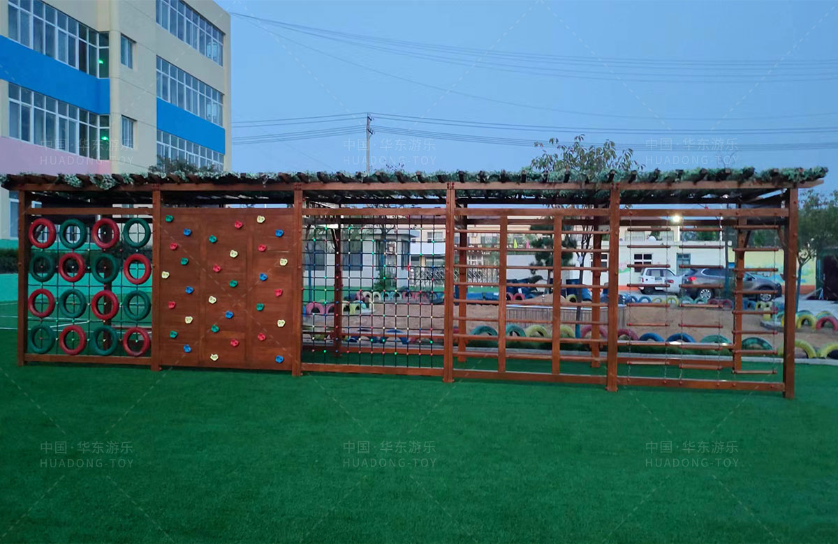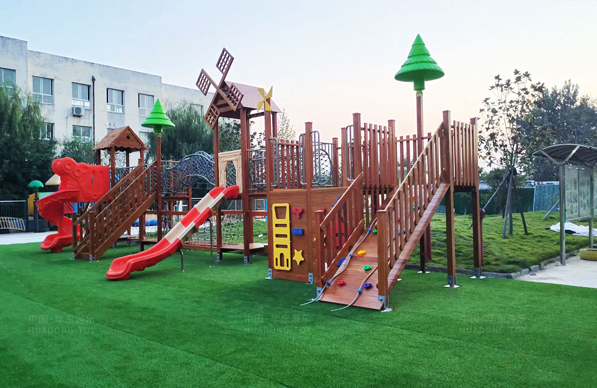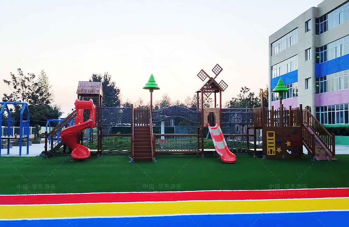团林镇中心幼儿园是一所专业性的学期教育学校,此处选用的是必一运动游乐自主研发和设计的魔法屋系列组合滑梯和木制拓展游乐设备,具备了攀爬、钻洞、滑梯、攀爬网、攀爬梯等功能为一体,不仅仅为小朋友提供了一个很好的游乐环境,也为老师的教学提供了帮助。