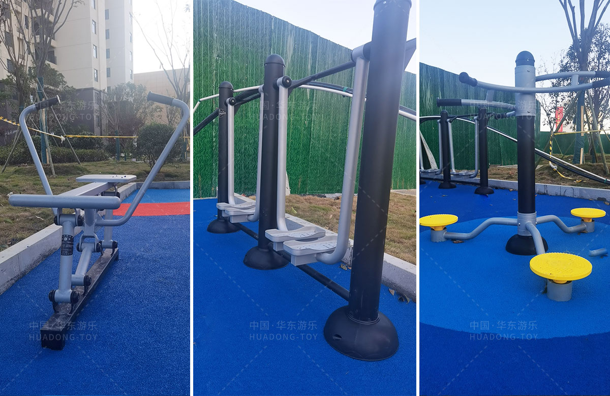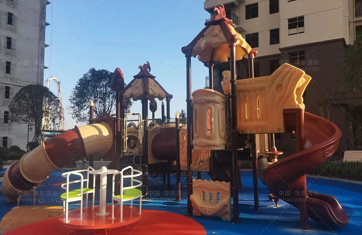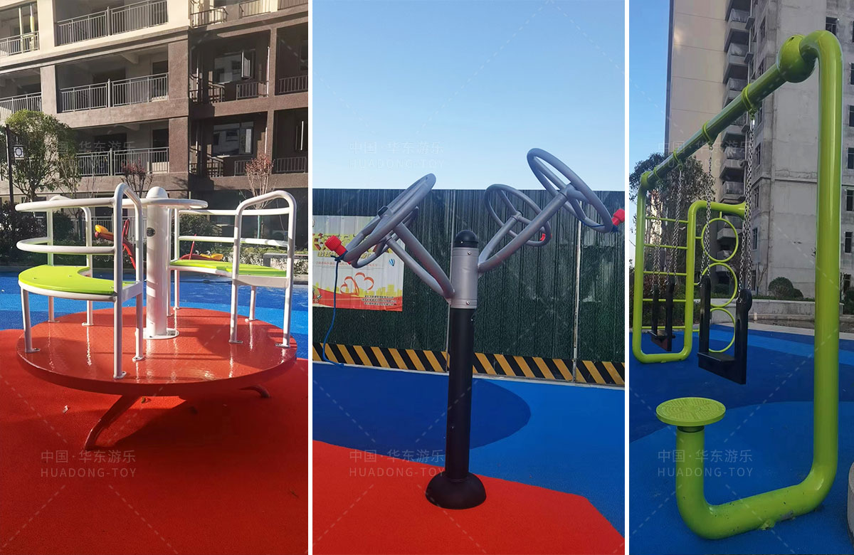 湖北黄冈市浠水县星河荟小区选用的是必一运动游乐自主研发和设计的魔法屋系列组合滑梯,同时为了更好的满足全龄人群的健身和需求还配备了漫步机、太极手推器、吊环等户外健身器,不仅仅满足了孩子们的游玩需求,也为当地的人提供了一下休息、娱乐、健身、遛娃的场所。
