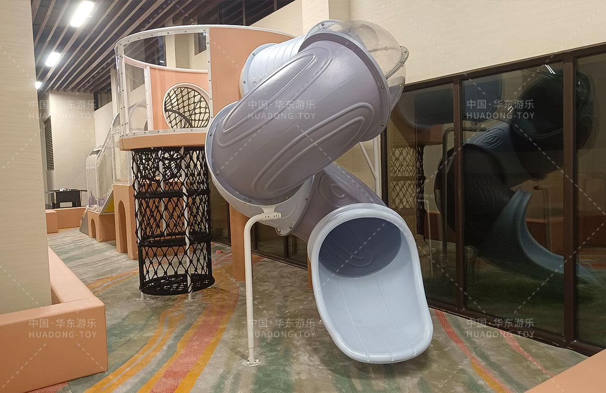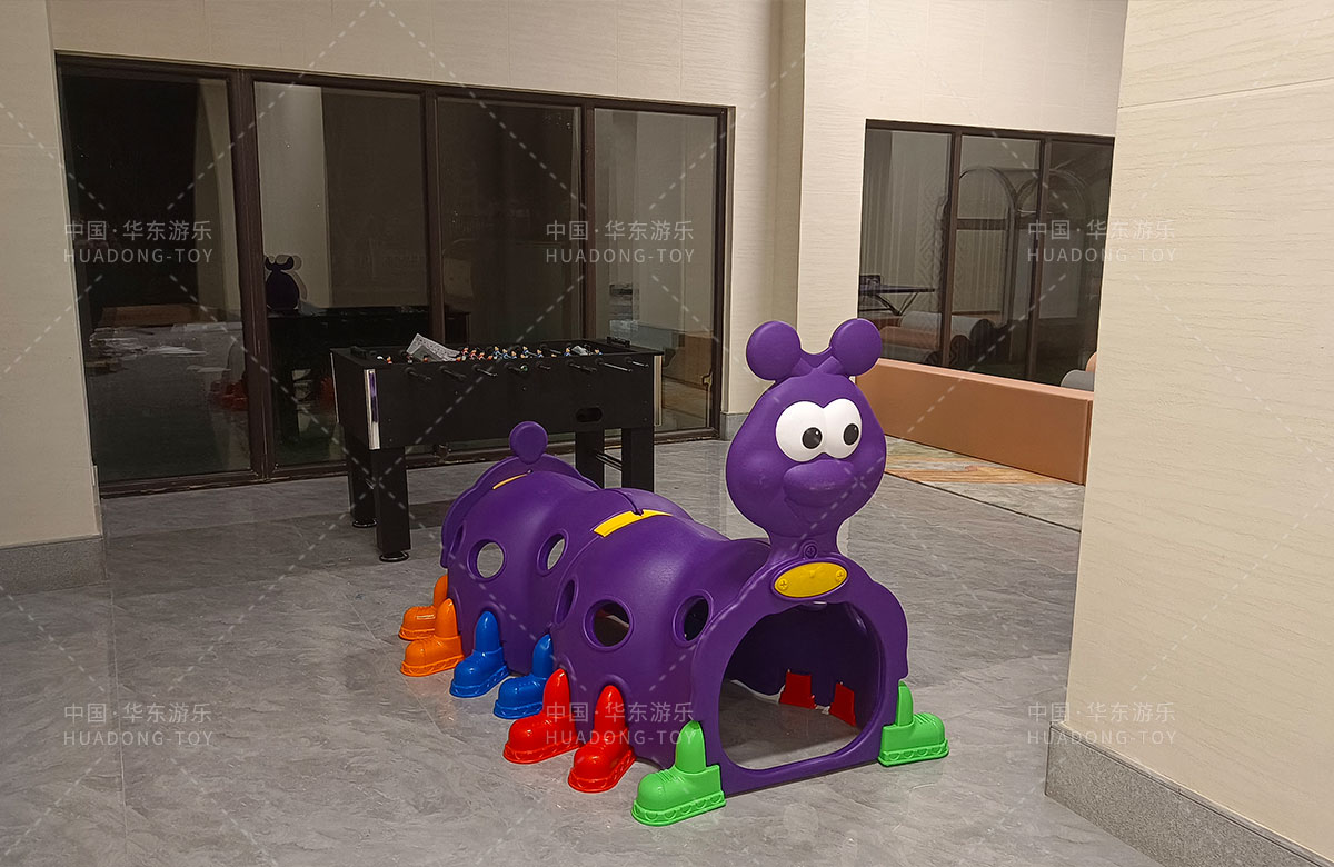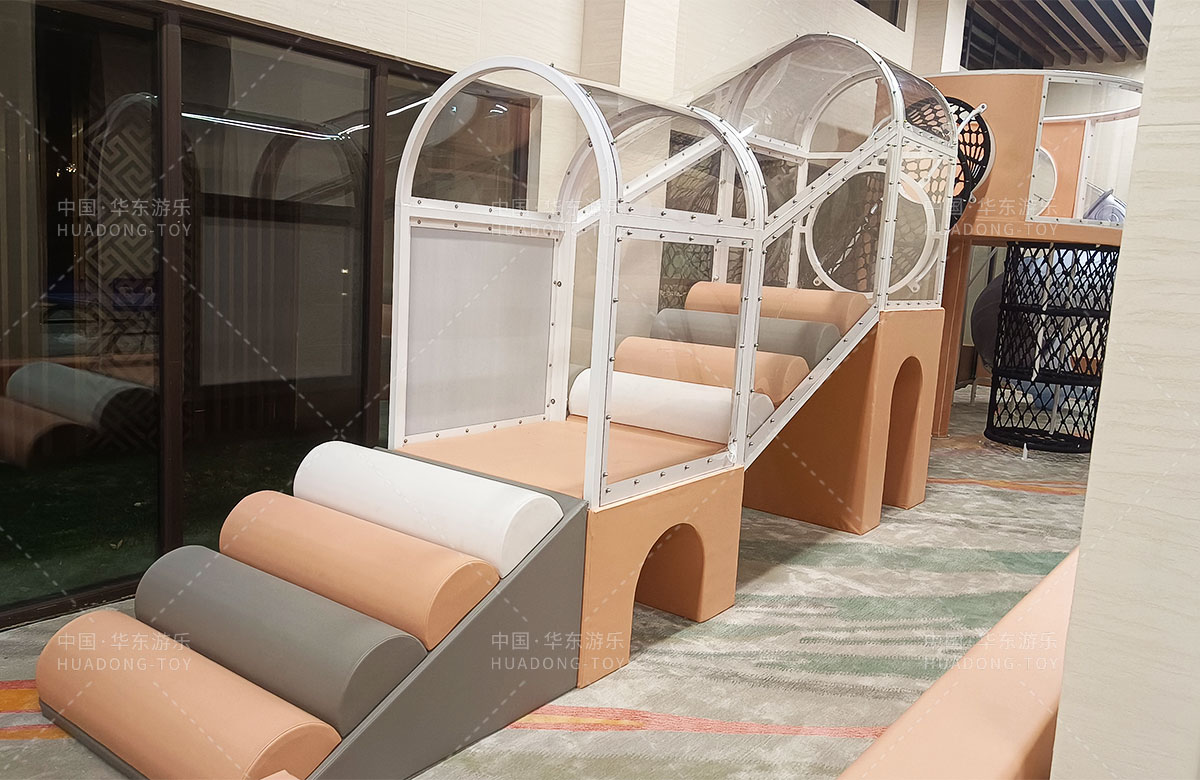 该项目选用的是必一运动游乐生产的室内淘气堡系列产品,整套设备集合了攀爬网、钻洞、攀爬梯、旋转滑筒等功能,除此之外还设置了小朋友们喜欢的毛毛虫钻洞,儿童台球、乒乓球、桌面足球等设备,让整个售楼处变得更加的充满生机与活力。