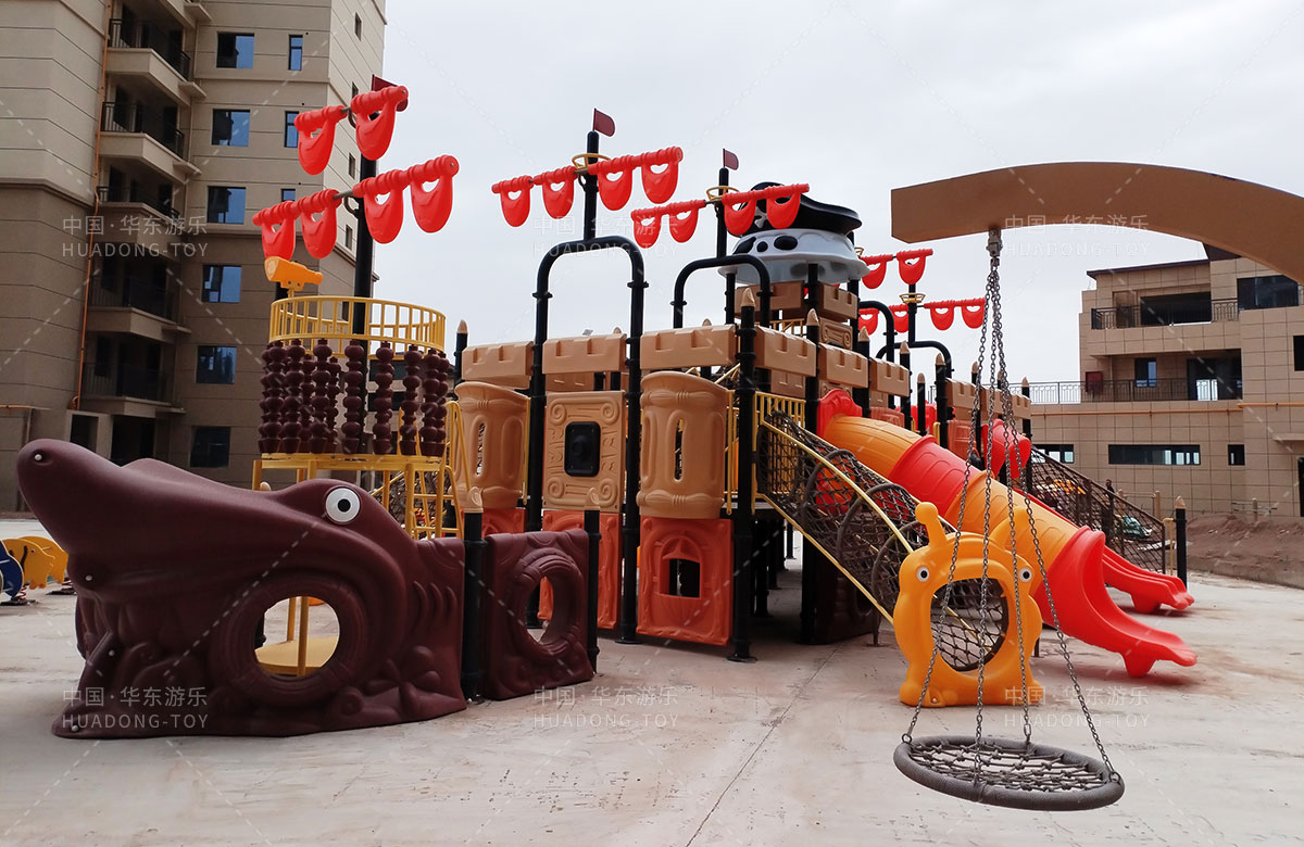 该项目选用的是必一运动游乐自主研发和设计的以海盗系列为主题设计的海盗船系列组合滑梯,该滑梯具备功能齐全、颜色艳丽、使用寿命长、安全环保等特点,是一款非常受小朋友欢迎的组合滑梯,除此之外还设置了小朋友喜欢的儿童摇摇乐、秋千等游乐设备,同时还专门设计了健身区,为生活在当地的人群提供了一个休息、娱乐、遛娃的场所。