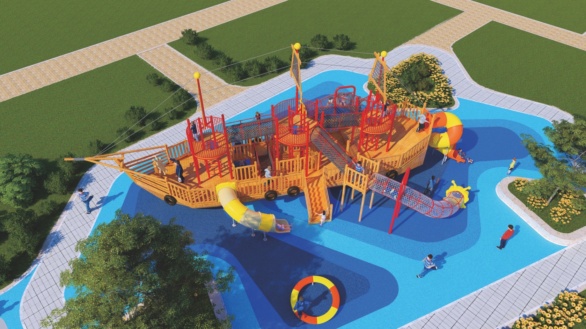 木质海盗船组合滑梯的设计以大自然为主题,融合了船体、桅杆、甲板等元素,外观新颖、结构牢固。它集攀爬、滑梯、秋千等功能于一体,旨在锻炼孩子的平衡协调能力和自我保护意识,同时培养探险精神。